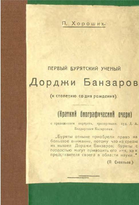 ***Хадалов, П. И. Буряадай түрүүшын эрдэмтэ Доржо Банзаров : Бурят-Монгол. культурын научно-шэнжэлэгын ин-та уншагдаhан публична лекциин стеногр. = Первый бурятский ученый Доржи Банзаров : стеногр. публ. лекции прочитанной в Бурят-Монг. науч.-исслед. ин-те культуры. – Улаан-Үдэ : Бурят-Монг. номой хэблэл, 1953. – 24 н. . – Текст : непосредственный.