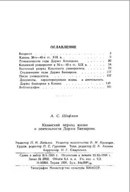 Шофман, А. С. Казанский период жизни и деятельности Доржи Банзарова / А. С. Шофман ; [ред. П. И. Хадалов]. – Улан-Удэ : Бурят-Монг. кн. изд-во, 1956. – 163 с. – Текст : непосредственный.
